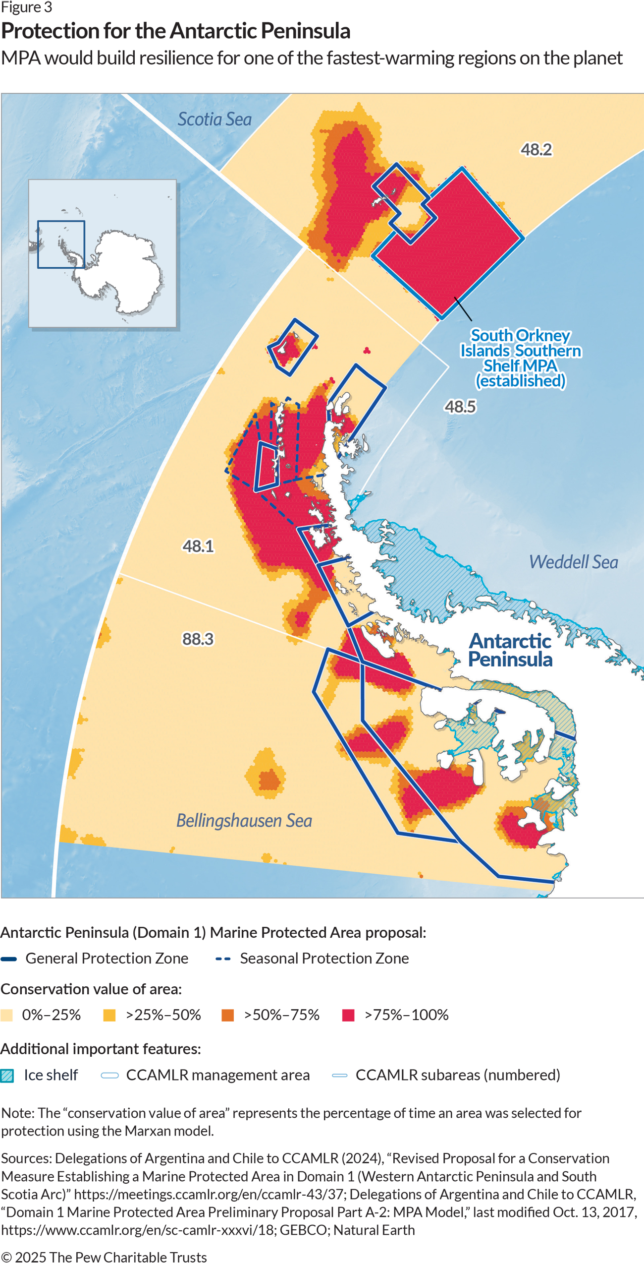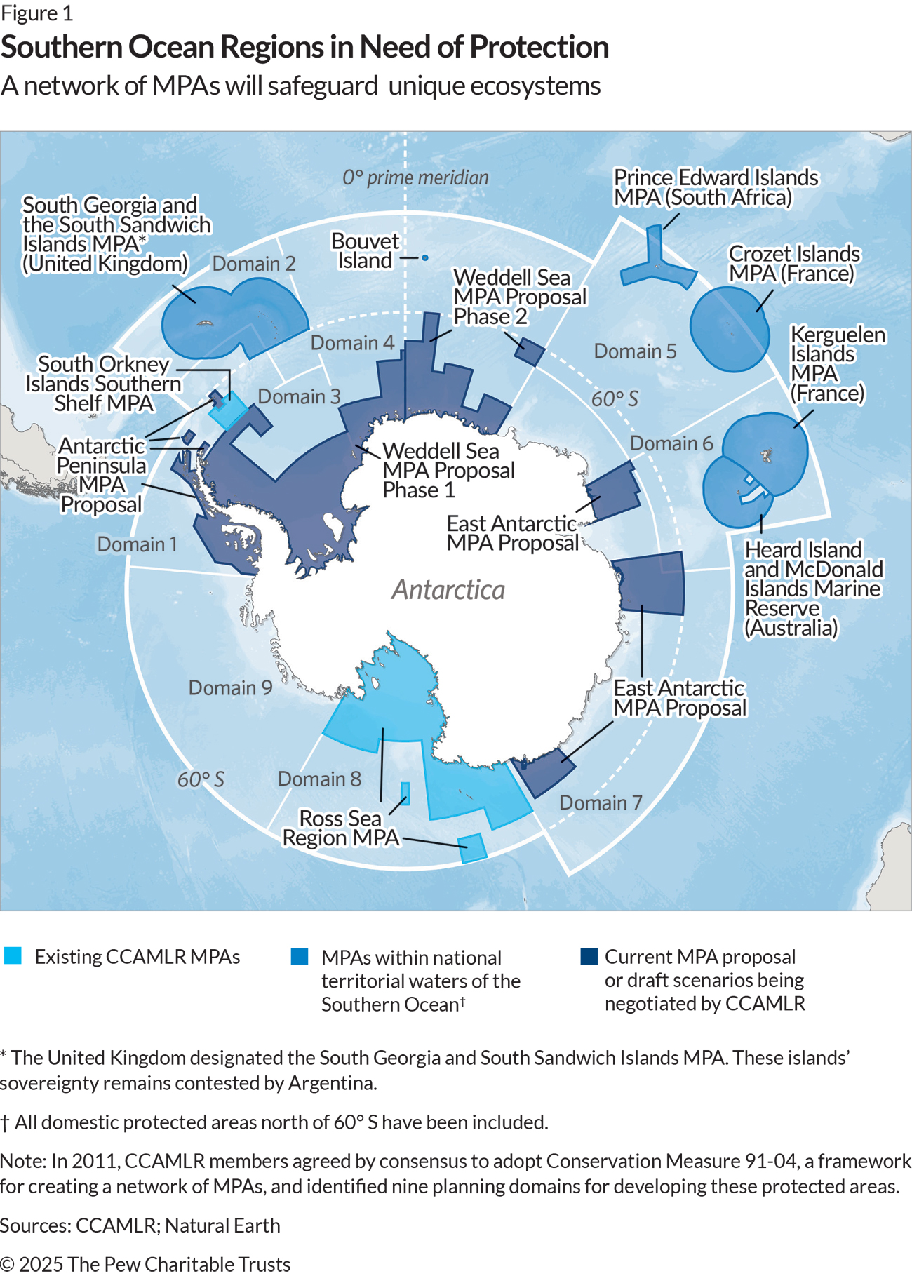 Note: This brief was updated May 1, 2025, to include updates to the Weddell Sea Marine Protected Area Proposal Phase 2, the Antarctic Peninsula (Domain 1) Marine Protected Area proposal, and the Heard Island and McDonald Islands Marine Reserve.